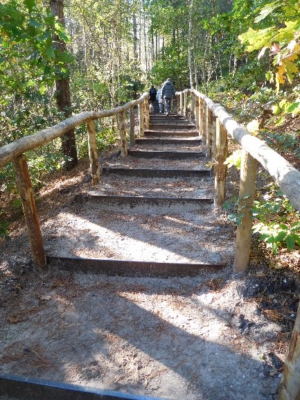 Freek Bosschers (coördinator van het Nederlands Kustpad 2 Noord-Holland) heeft vanuit de Nivon Wandelwerkgroep Noord-Holland het initiatief genomen om een trede te sponsoren. Nadat het totale bedrag bijeen was gebracht, heeft Staatsbosbeheer de trap gerenoveerd. En nu, na ruim anderhalf jaar is de trap gereed.